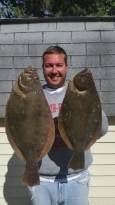 Away from the tournament David Beach was fishing his usual spot from shore today and put a couple of nice flounder in the cooler. David used live bunker to land fish of 19.5″ and 21.5″.