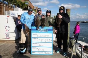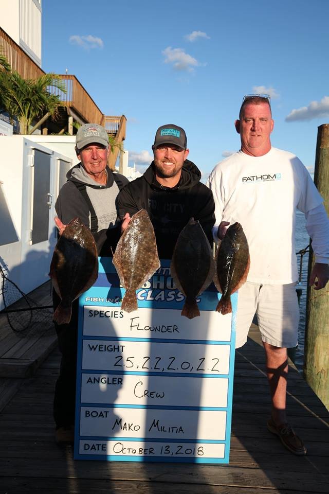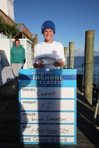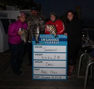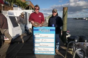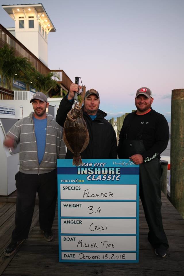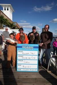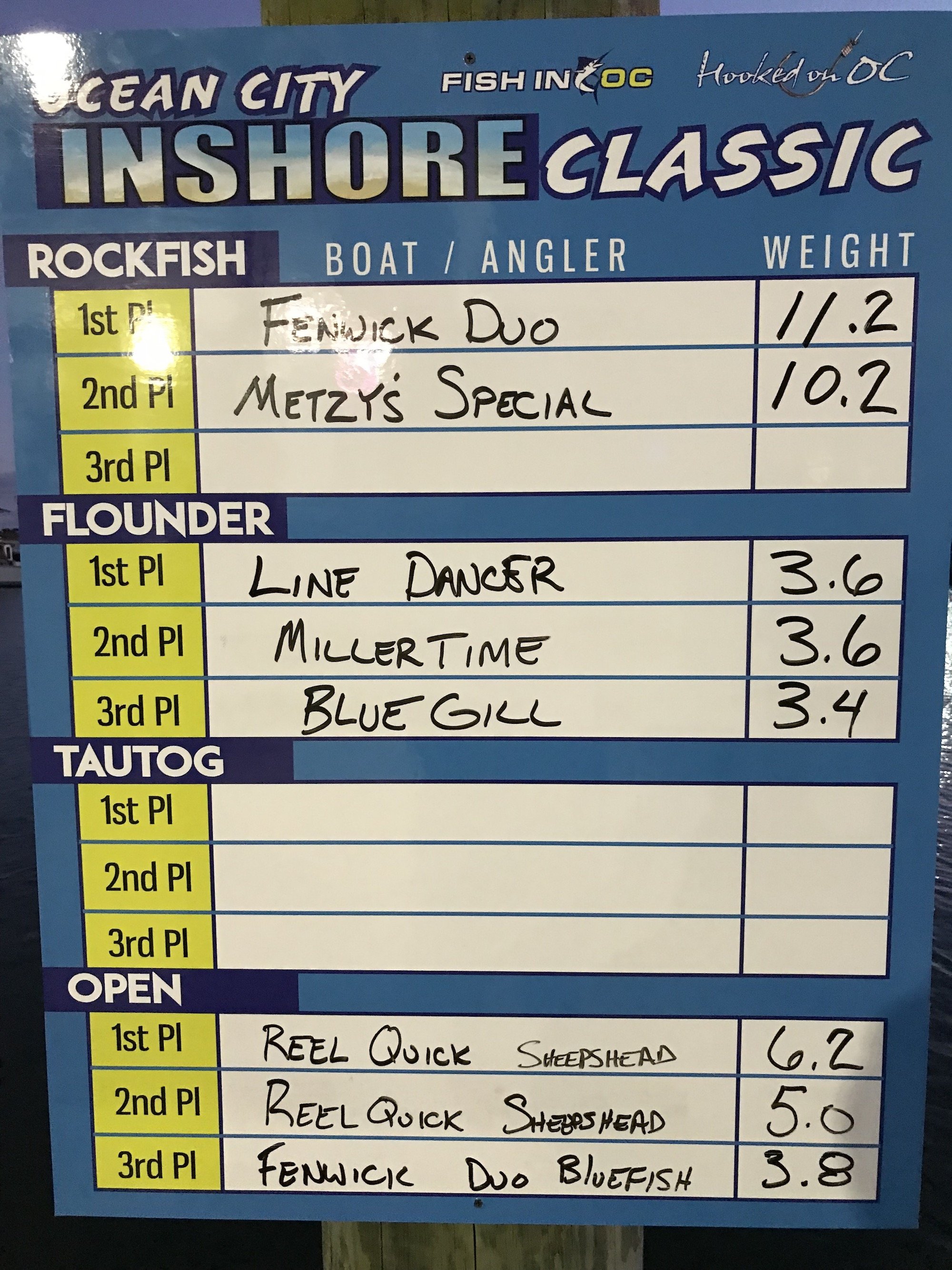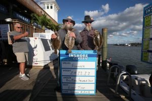 Today was day 1 of the 2nd Annual Ocean City Inshore Classic put on by Fish in OC and Hooked on OC and it was a busy one! We’ve got a great turnout with 30 boats fishing and we are going to pay out over $9,000 in prize money tomorrow night and today we got things off to a great start. We saw croaker, trout, sheepshead, bluefish, flounder and rockfish today and there were some nice fish weighed. Weighmaster Dean Lo of the Angler weighed 28 flounder today and only 1.5 pounds separated all of them. Here’s who’s on the leaderboard after day 1.