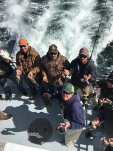 The Judith M traveled 18 miles offshore today and had a great day of sea bass fishing. Nearly everyone limited with a boat total of over 100 sea bass. Some nice trigger fish and a few small bluefish were in the mix. The fish were caught over natural bottom with squid and strip baits. The trip was part of Wayne Cawley’s (Denton MD) bachelor party weekend in Ocean City.