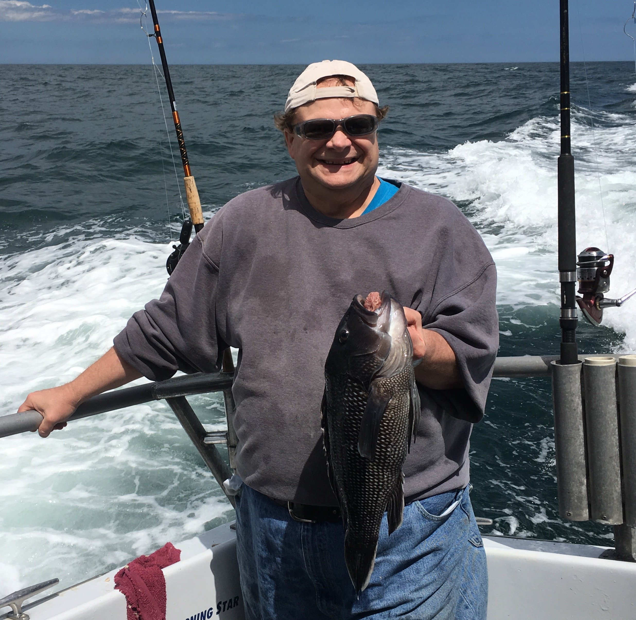 Captsin Monty Hawkins of the party boat Morning Star headed out to the rip this morning hoping to get in some sea bass fishing before the wind. Captain Monty reported that sea bass fishing was “A-ok” today with plenty of fish coming over the rail including this beauty by living legend “Hurricane” Murray.