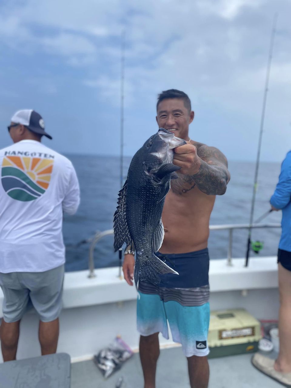 Captain Monty Hawkins of the Morning Star had a nice day around his rail today with some big sea bass, some flounder and even a few mahi mixed in.