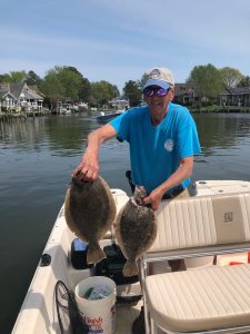 Kevin Welkner put Bud Heim on a couple of nice keeper flounder this afternoon in the Thorofare. Bud landed his first keepers of the year at 18″ and 20 1/2″.