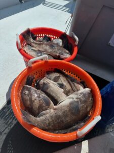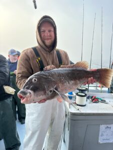 Captain Kane Bounds and the crew of Fish Bound had a great day on the ocean today with a boat limit of nice tautog for everyone. A couple of the largest fish were released to swim again and weighed in at 13 and 14 pounds.