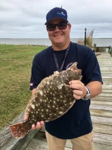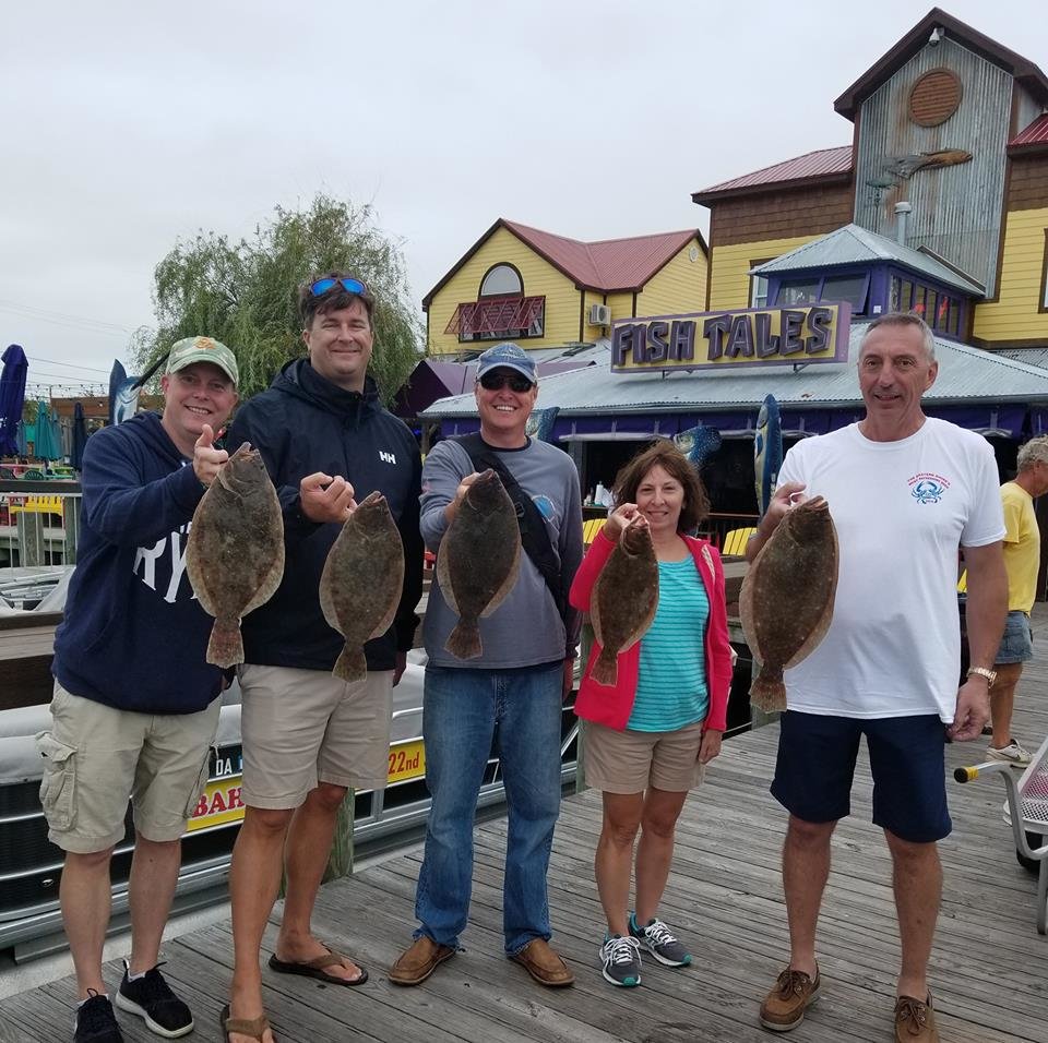 Captain Drew Zerbe of the Tortuga was out on the bay this morning with a charter with the American Banker’s Association and was able to put them on some good action for flounder. Pictured areEarl Conley Standing in for Ron Laws of Salisbury, MD, Andy Bulgin, Baltimore, MD, Melissa Quirk, Preston, MD, Tracy Schultz, Kent Island, MD and Reed Tingle, Fenwick Island, DE. Tracy’s flounder was the largest at 18″, 2 lb. 10 oz. All were caught on shiners and squid in the northern east channel and netted by Serge Gardner.