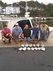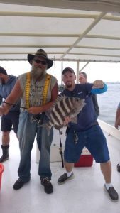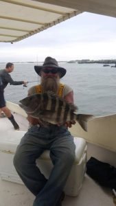 Conditions were tough inshore, but boats were still willing to get out and drop a line because fishing has been really good the past few days. Captain Jason Mumford of Lucky Break Charters had my buddy Big Bird Cropper out this morning and was able to put Bird and his crew on some really good sheepshead action. The crew ended up putting 13 fish in the box. Big Bird’s largest was a nice 22″ fish.