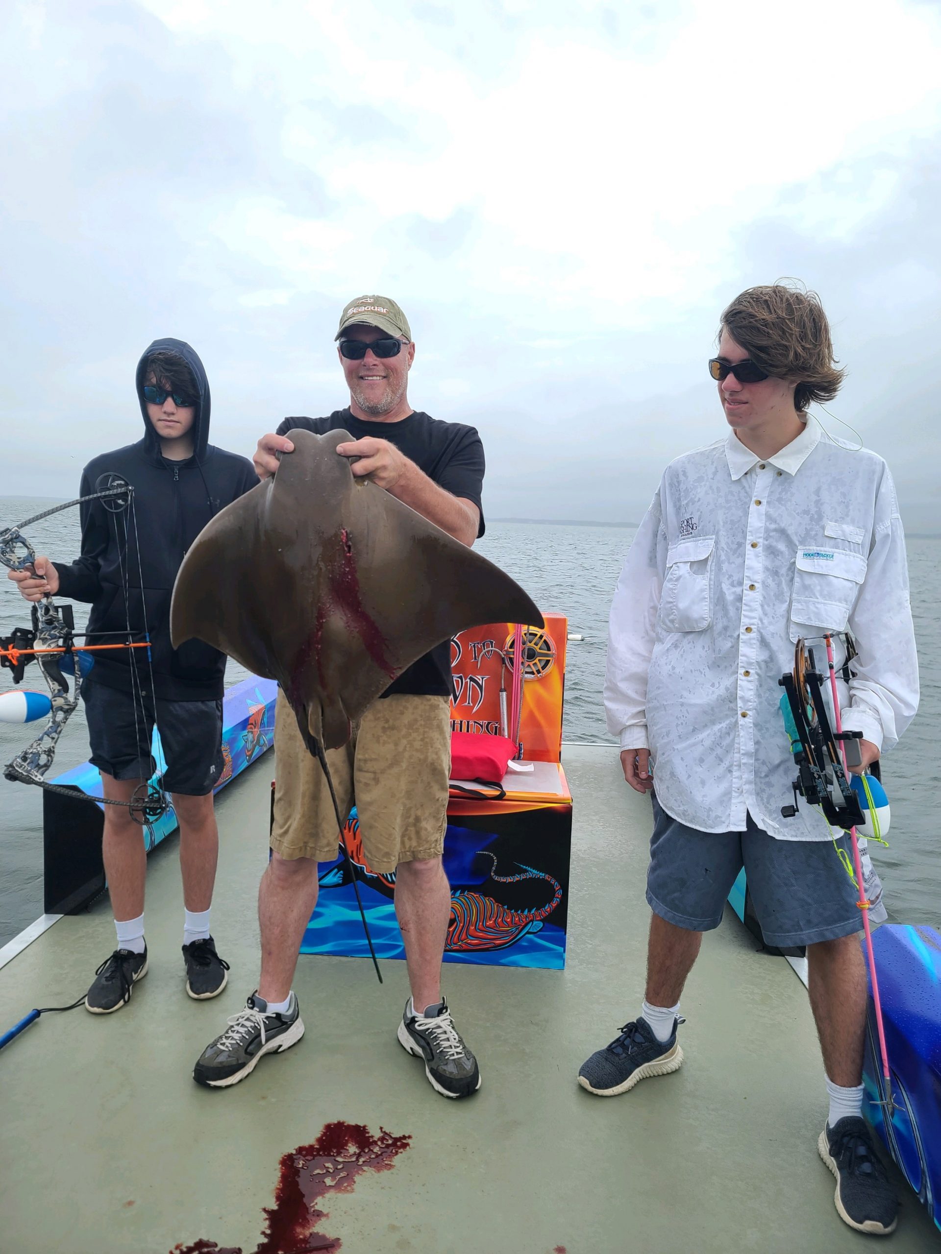 Captain Marc Spagnola of Dusk to Dawn Bowfishing visited the South Bay where he had good action for his shooters with cow nosed and southern rays.