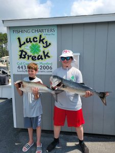 Captain Jason Mumford had the Lucky Break at the route 50 bridge this morning as well and he put his young anglers on some hard fighting bluefish that both measured out at 33″.