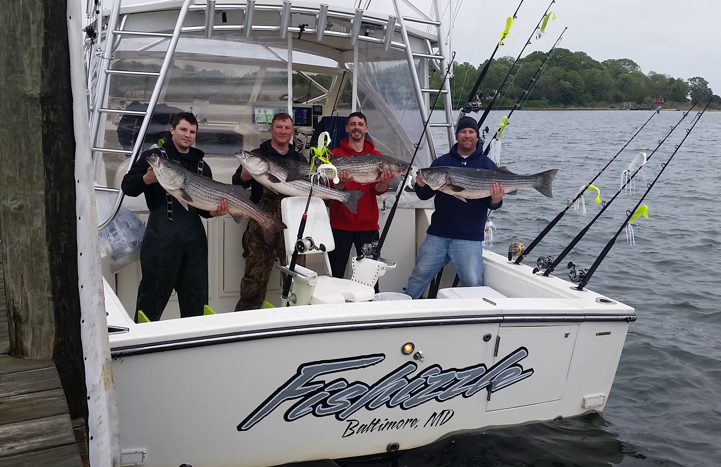 Speaking of rockfish, I got a submission from Chris Miller reporting some action from over on the Chesapeake Bay out of Solomons Island. Chris and his crew on the Fishizzle caught their limit of nice rockfish from 40″ to 43″ and up to 29 pounds in 58 degree water.