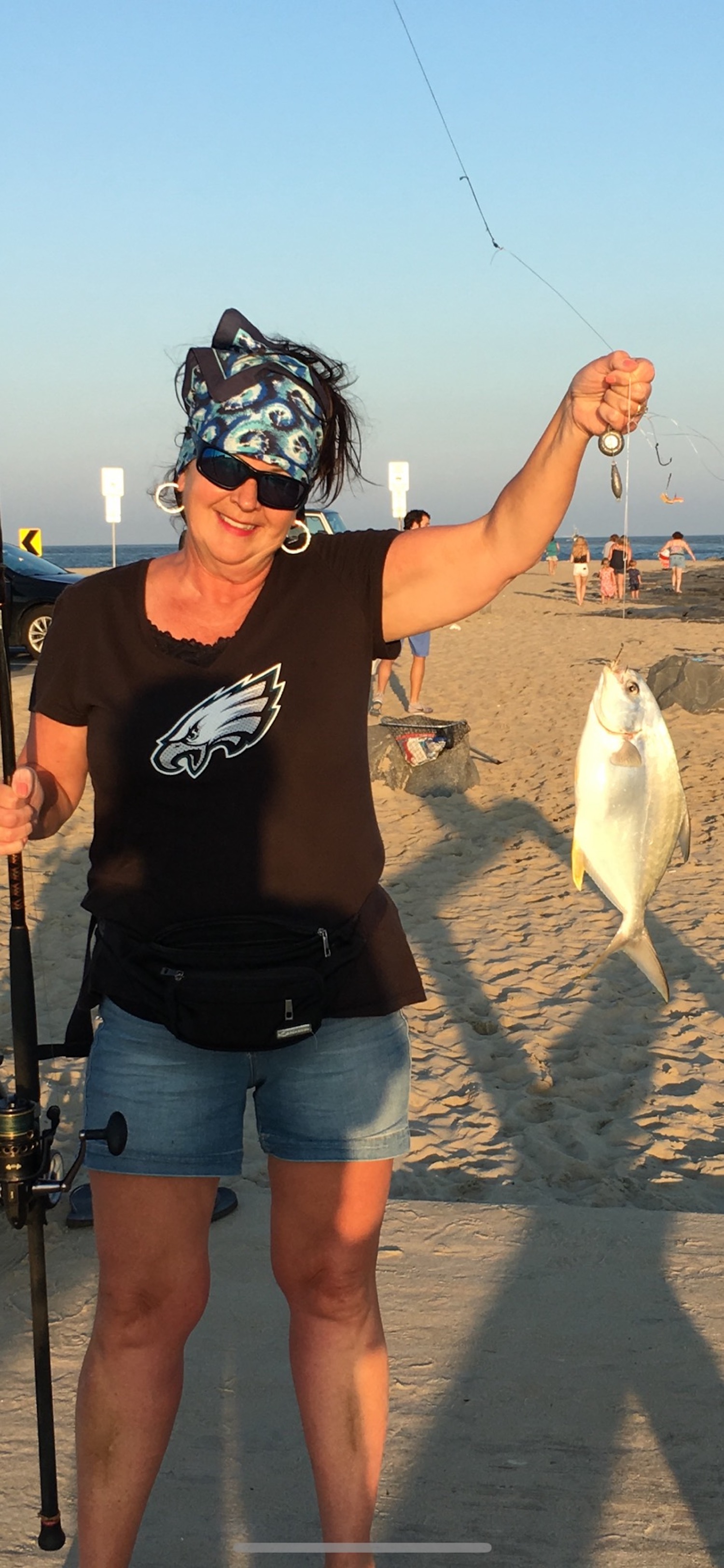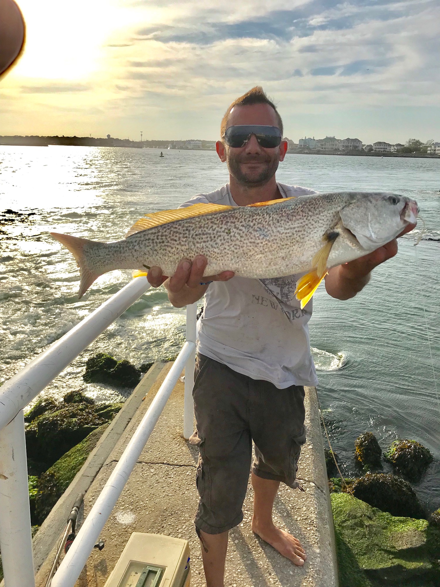 Bear down at the Oceanic Pier sent in several photos today, but a bunch of them were of the same guy. Bear’s first shot was of Christy who caught another nice pompano from the north sea wall and the rest of the shots were of Anatoli Georgiev who was on fire today. Anatoli caught a nice keeper sized flounder and a bunch of weakfish including a JUMBO 25″er!!