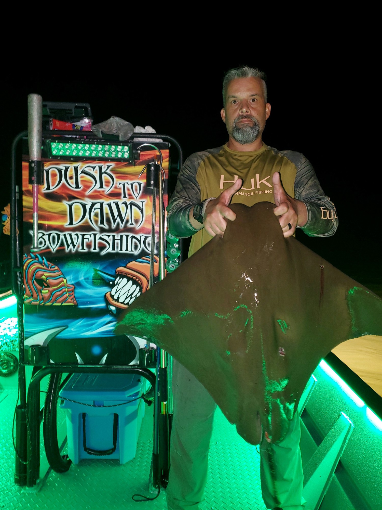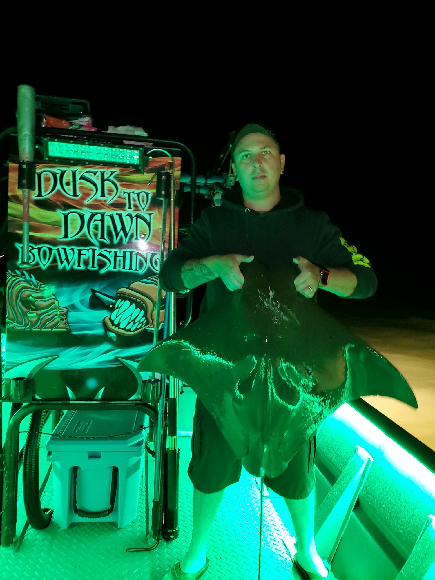 Captain Marc Spagnola of Dusk to Dawn Bowfishing had an excellent trip last night with some of our heroes as he took some veterans with Freedom Hunters. The soldiers had a great time with cow nosed and southern rays and I’m not surprised that their aim was right on.