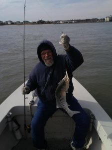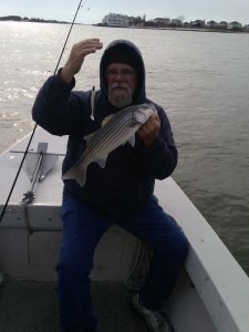One guy that you’ll see on the water when conditions are fishable is my man Big Bird Cropper. Bird was out on the bay today doing some Roy Rigging in the chilly temps and was rewarded with some action. Bird and Dave took a four hour trip where they found 55 degree water and 14 short rockfish.