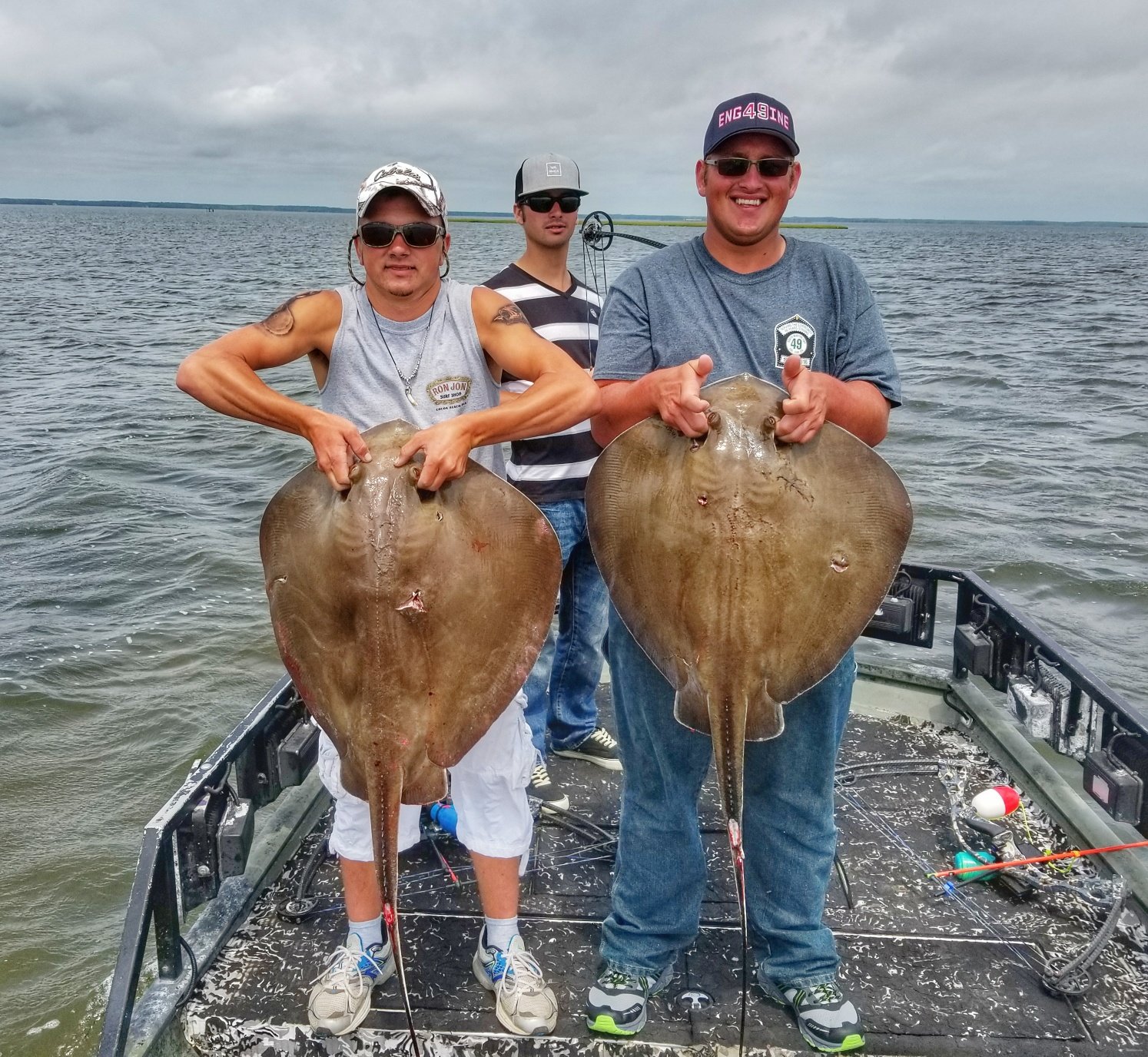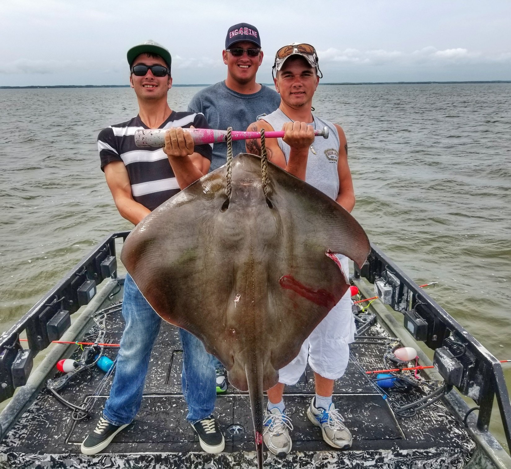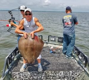 Captain Marc Spagnola of Dusk to Dawn Bowfishing had to deal with some tough conditions because of the wind today, but he still put his shooters on some great action with cow nosed and southern rays.