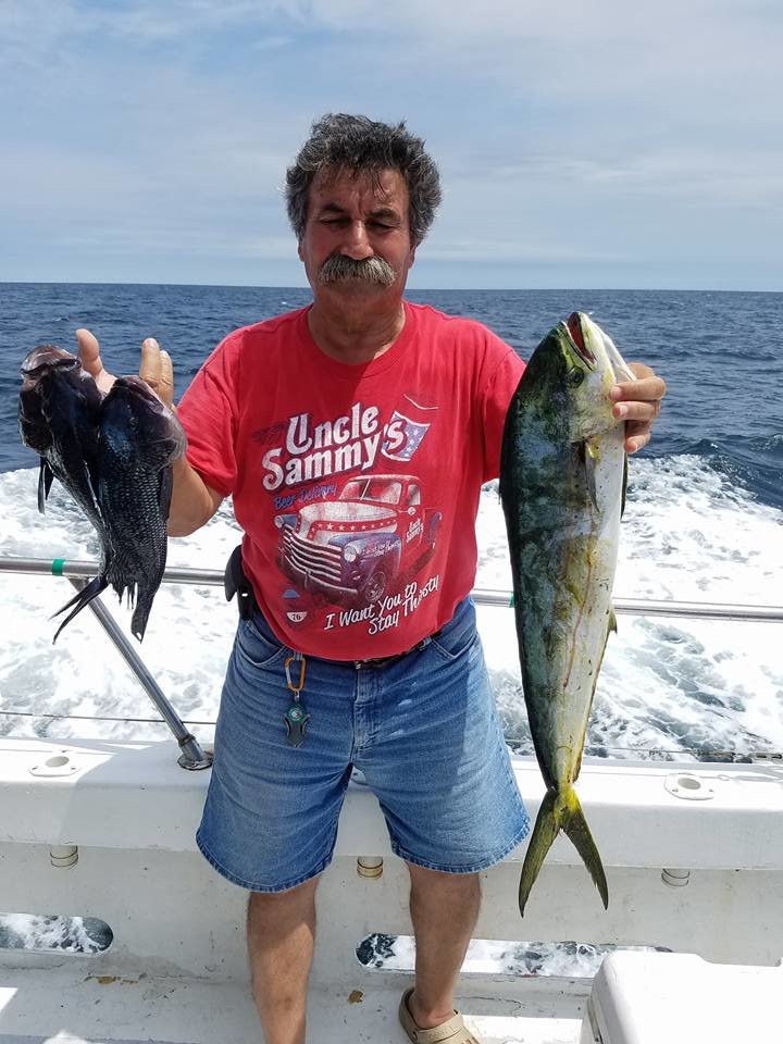 Captain Chris Mizurak of the Angler reported a decent sea bass bite and a couple of mahi before the wind started blowing this afternoon.