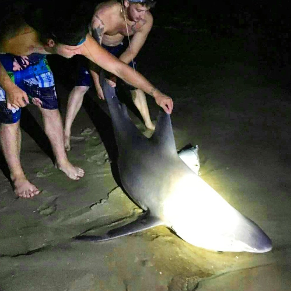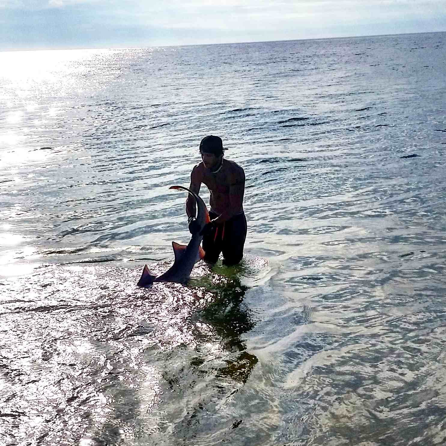 I got some great shots from Bear at the Oceanic Pier this afternoon. Bear said the OC Sharkin Crew was at it again at 130th street. Joe, TJ and Frank had good action catching and releasing sand tigers on bunker.