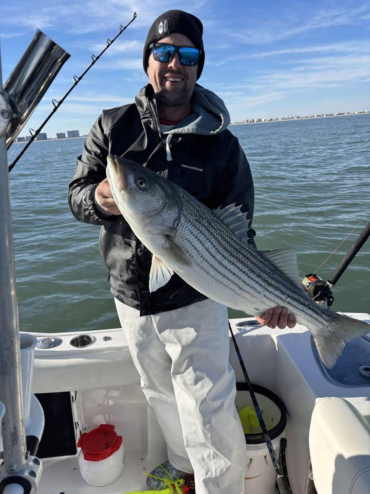 It was a chilly one out there today, but with not much wind to speak of it was a good day to get out on the water and do some late December fishing. There’s not much going on in the bay so it was out to the ocean for some to bend a rod on some migratory striped bass and some tautog.