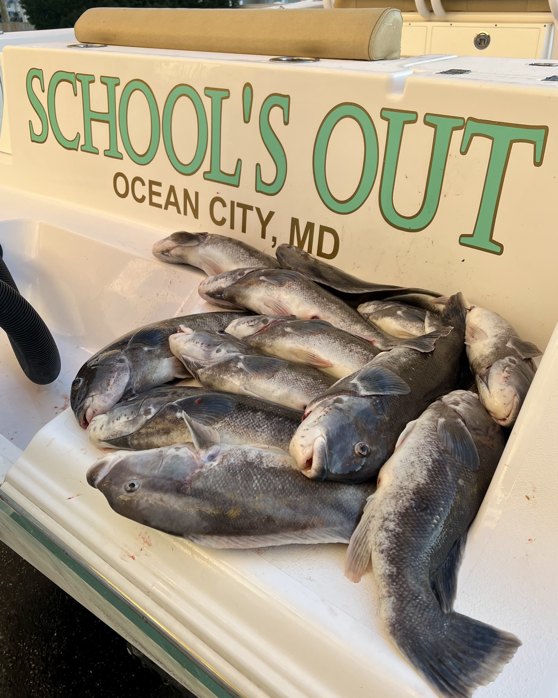 Forest Bleinberger, Dom Catrino and Jason Stokes fished a nearshore wreck and had a limit of nice tautog today. The crew also released another 45 or so fish in about three hours.