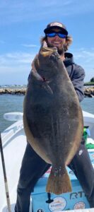 Mates Jacob Holley and Zac Taylor came up from Orange Beach Alabama on their 70’ Viking QuickTime to fish the Mid-Atlantic tournament circuit and wanted to catch a flounder bad! After walking a few miles from Sunset to the bridge to fish with little success they jumped aboard a friends boat (Jim Turner) and less than a minute into their first drift with live spot Jacob hooked and landed this doormat 27.5” 7lb flounder!