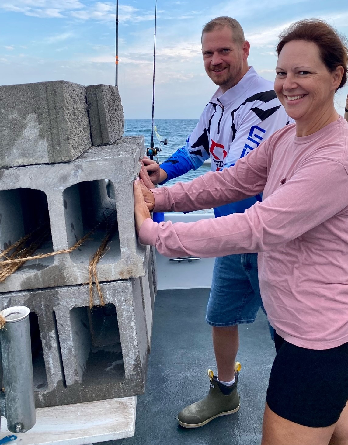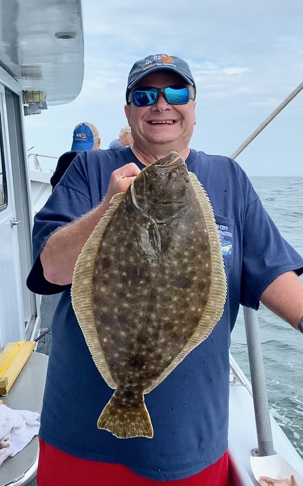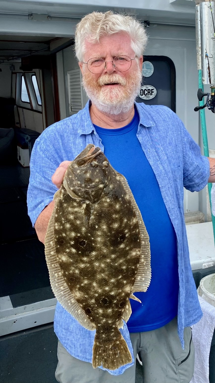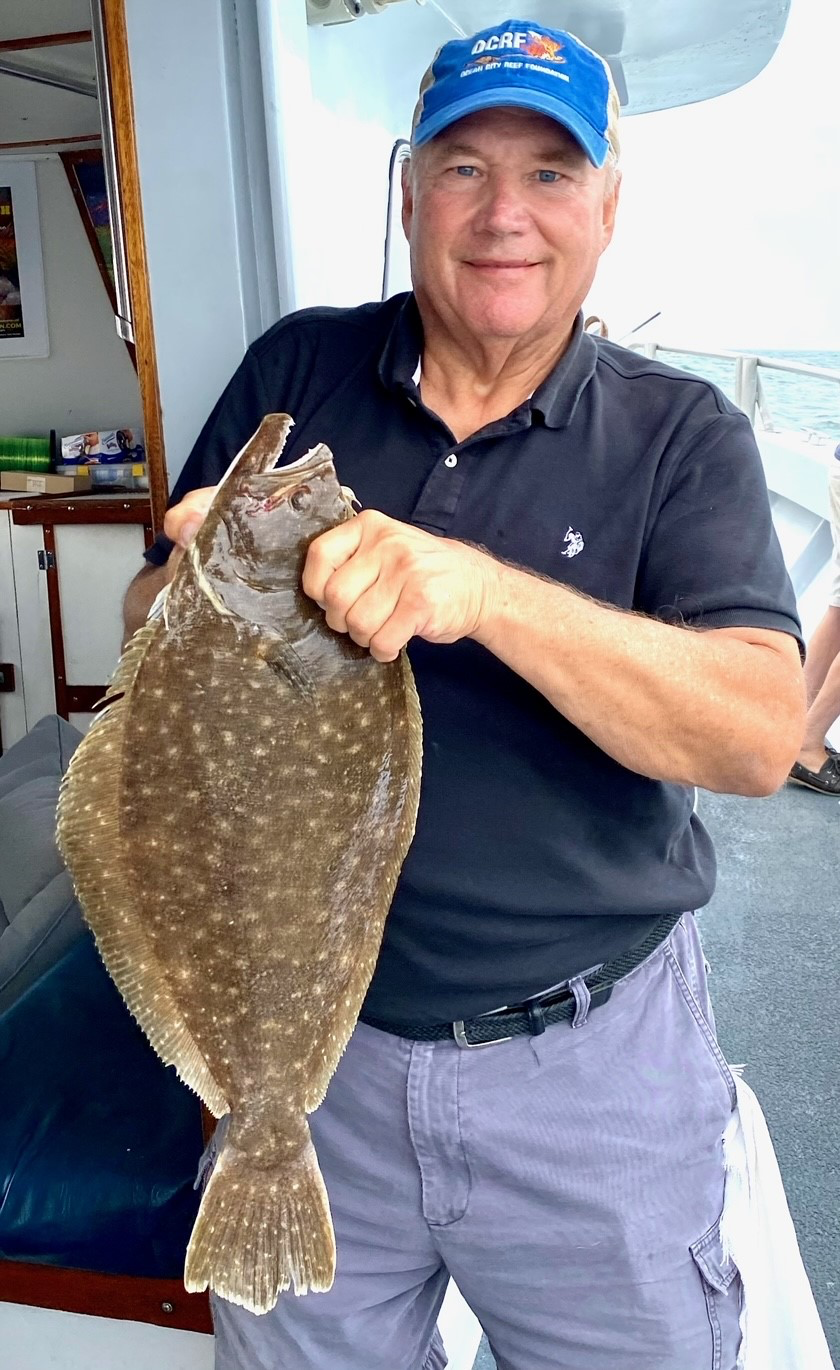 Already a bit more breeze than I’d expected at sunrise; just as glad I didn’t have to sweat it offshore. Fishing on a much shorter inshore flounder trip, I could see the water come alive as wind speed increased–then it would fall out again. Seemed like soon it would stick. Working for our flounder; at first we saw only short after short. Then I reminded Hurricane Murray, “If you’re unlucky at love, you’re lucky at fishing.” Soon he boated one, then a keeper double; and, at 10:15 (just like the other day) he boxed his limit.. That old expression has proven too true! While Hurricane Murray had our only limit, everyone had dinner – some several. Bob won today’s pool with a fine dandy. He’d told me this morning if he won his son in law was good for a 10X match to OCRF. Wow!! Well, I think he said that. Umm.. Maybe. (Ha! but he IS super generous to our effort!) In at 12:30 just before the downpours began. Works. The gals are reloading Reef T-Shirts at the WMO shirt tent at the Inlet. Reef building gets a handsome donation from the sale of alcohol at their venue also. Watch the boats come in and bottoms up! (see ocreefs.org for more info. We’re coming up on a super busy reef deployment season. Plenty in the pipeline! Have a few spots open most every fishing trip. See morningstarfishing.com under the Fish Report tab for reservation details. CheersMonty