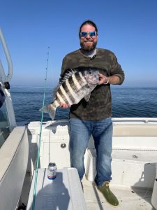 Yesterday, Mikey Johnston and Jimmy headed a couple of miles offshore where they found a couple of really nice sheepshead. Jimmy’s fish was 11.1 pounds and Mike’s was a big 12.11. Both fish were personal bests for the guys.