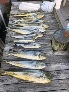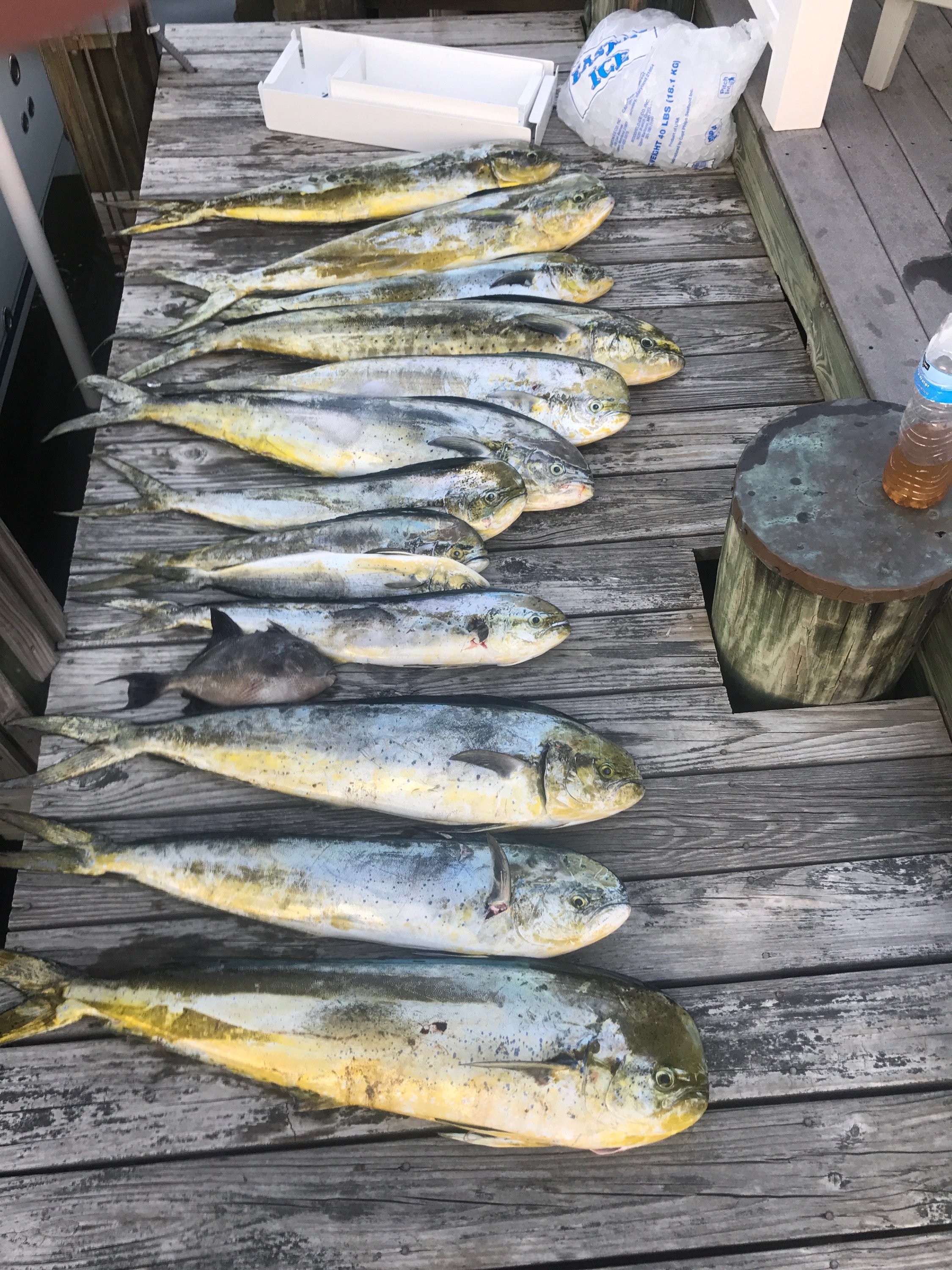Eric “Perch” Sexton fished on the Four Eights today with Captain Tod Cannaddy, Steve Shad and Johnny Russell in the Washington Canyon where they were lucky enough to find a log floating that was holding some fish. The saw some wahoo that wouldn’t eat and were able to bail these mahi that saved the day.