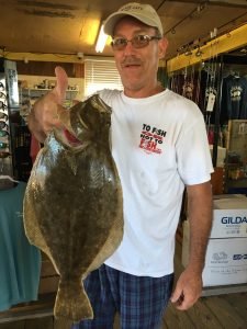 Big Bird Cropper of the Ocean City Fishing Community had his friend Karl from Germany aboard today and put him on 13 throwback flounder and this 20″ keeper.