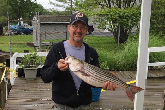I like to get the family and friends involved in the report when I get a chance, especially when they don’t get to get out and fish much. I get to fish all the time and most of my relatives don’t, so it’s cool when I get to see them doing what I love! My uncle Tim Spesick got a chance to fish out of Deale, MD today for some rockfish and had a great day. Now that the spring trophy season is over on the Chesapeake Bay the limit is two fish per day with a minimum size of 20″. They caught and released several nice rock and this 24″ fish went home for dinner.