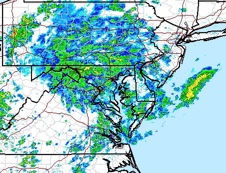 Another day of rain and unseasonably cool temperatures in Ocean City made for another day of limited fishing. It didn’t rain as much today as it did yesterday, but the wind was up this afternoon, it was cool and we had a misty, light rain that was just miserable. The weather forecast for the next few days calls for mostly cloudy skies, winds out of a northerly direction at 15-20 knots and a chance of rain through Tuesday sometime. By the looks of this radar I’m not expecting much to be going on until the weather gets straight on Wednesday.