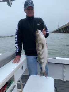 Captain Chase Eberle of Chasin’ Tides Charters was at the route 50 bridge today and he had success for his anglers as well. Captain Chase had good action for bluefish and throwback rockfish, and then said, “welcome to the party, Pal!” to a 29″ keeper.