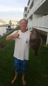 Brian Brennan landed his first keeper flounder from an ocean wreck today and it was a nice 22″ fish.