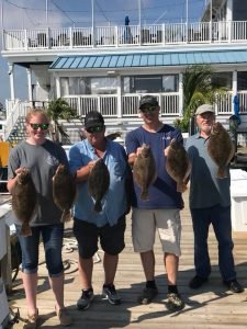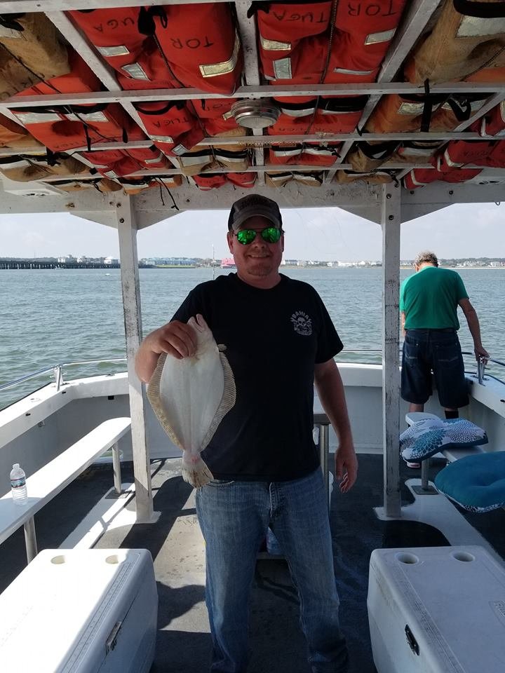 Flounder fishing was SO good that Captain Drew Zerbe of the Tortuga even got in on the action. Captain Drew caught a double header throwback on one drop and this 18″ keeper for dinner on the next.