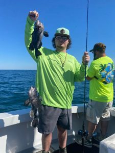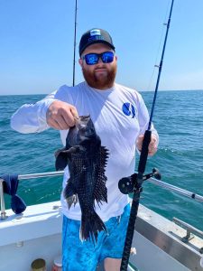 Captain Chris Mizurak of the Angler reported rough conditions today, but the sea bass didn’t seem to mind. Angler has cancelled for tomorrow and probably Sunday due to the rough forecast.