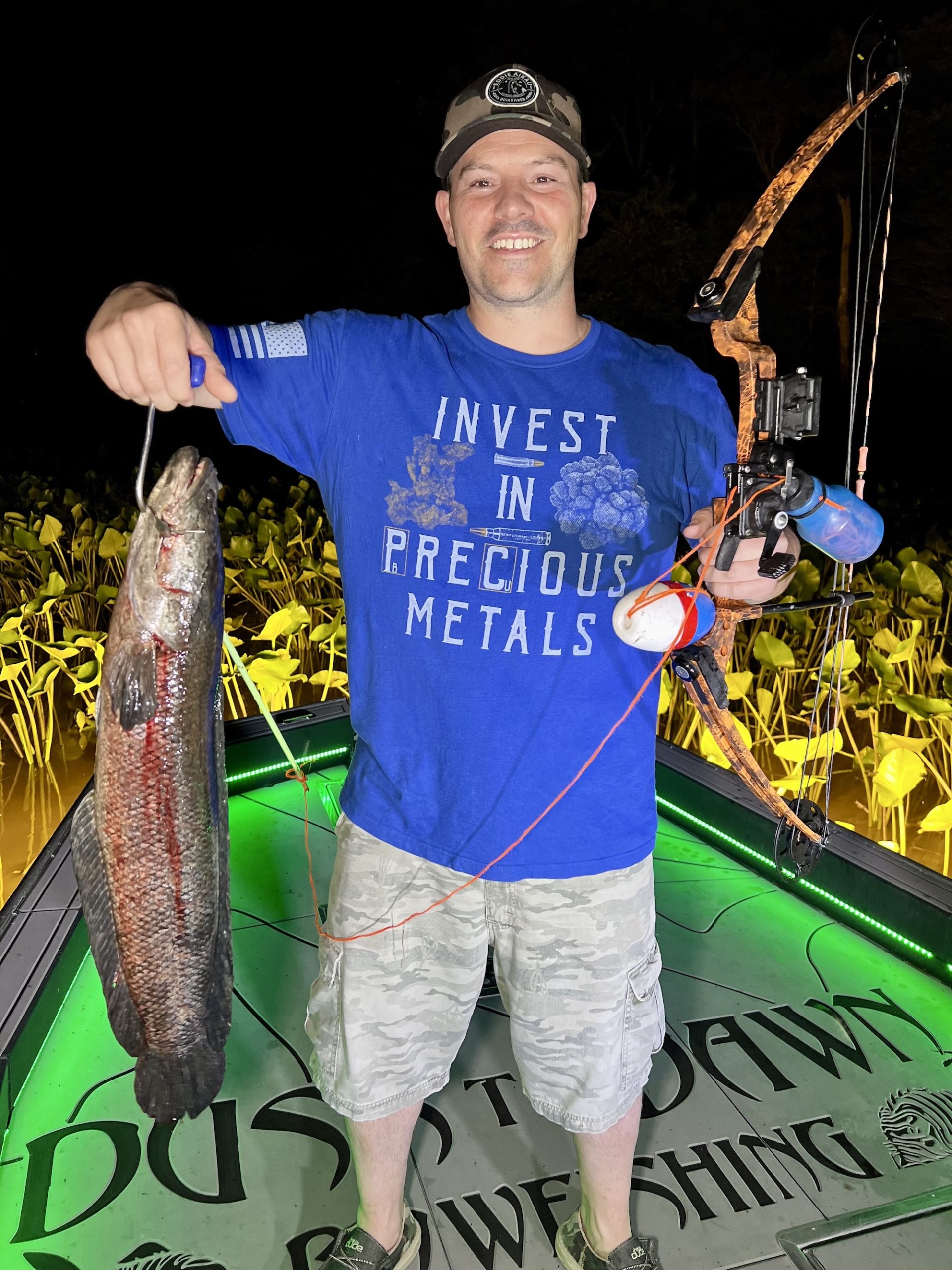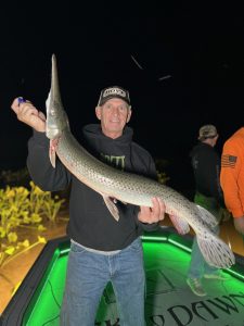 Capitan Marc Spagnola of Dusk to Dawn Bowfishing isn’t getting much sleep lately and he’s taking it out on gar, snakeheads, big catfish and rays.