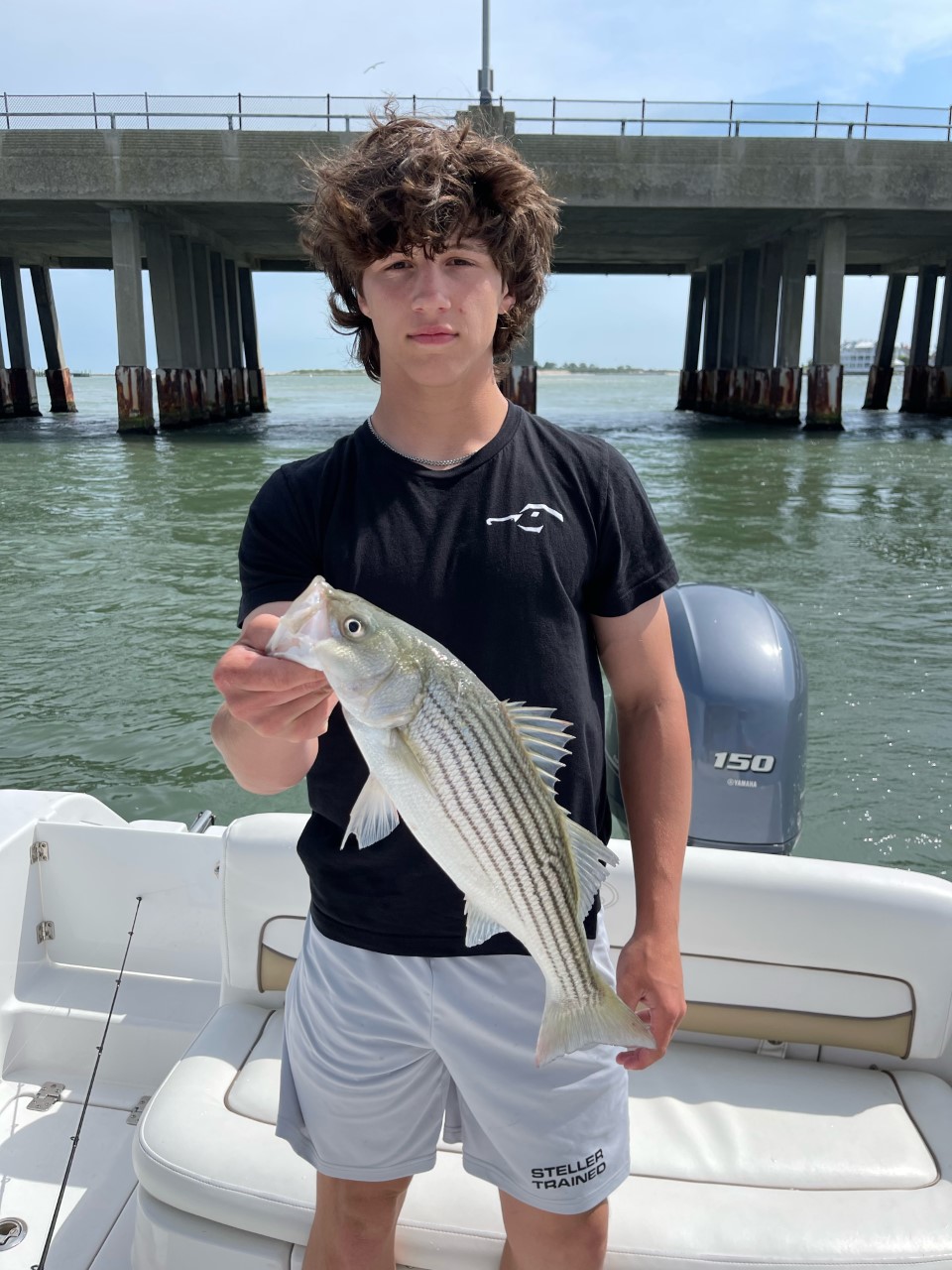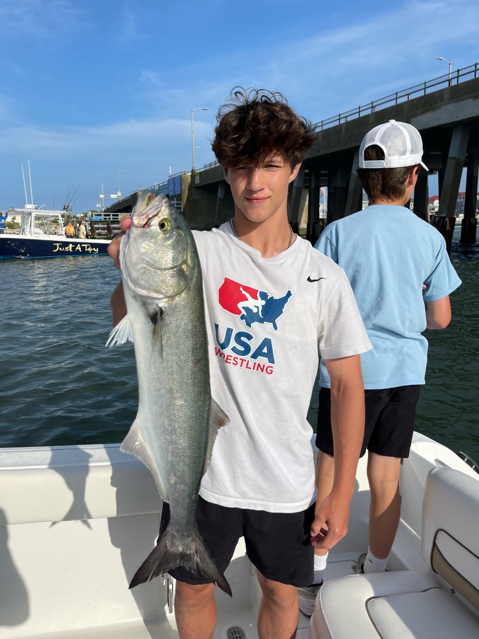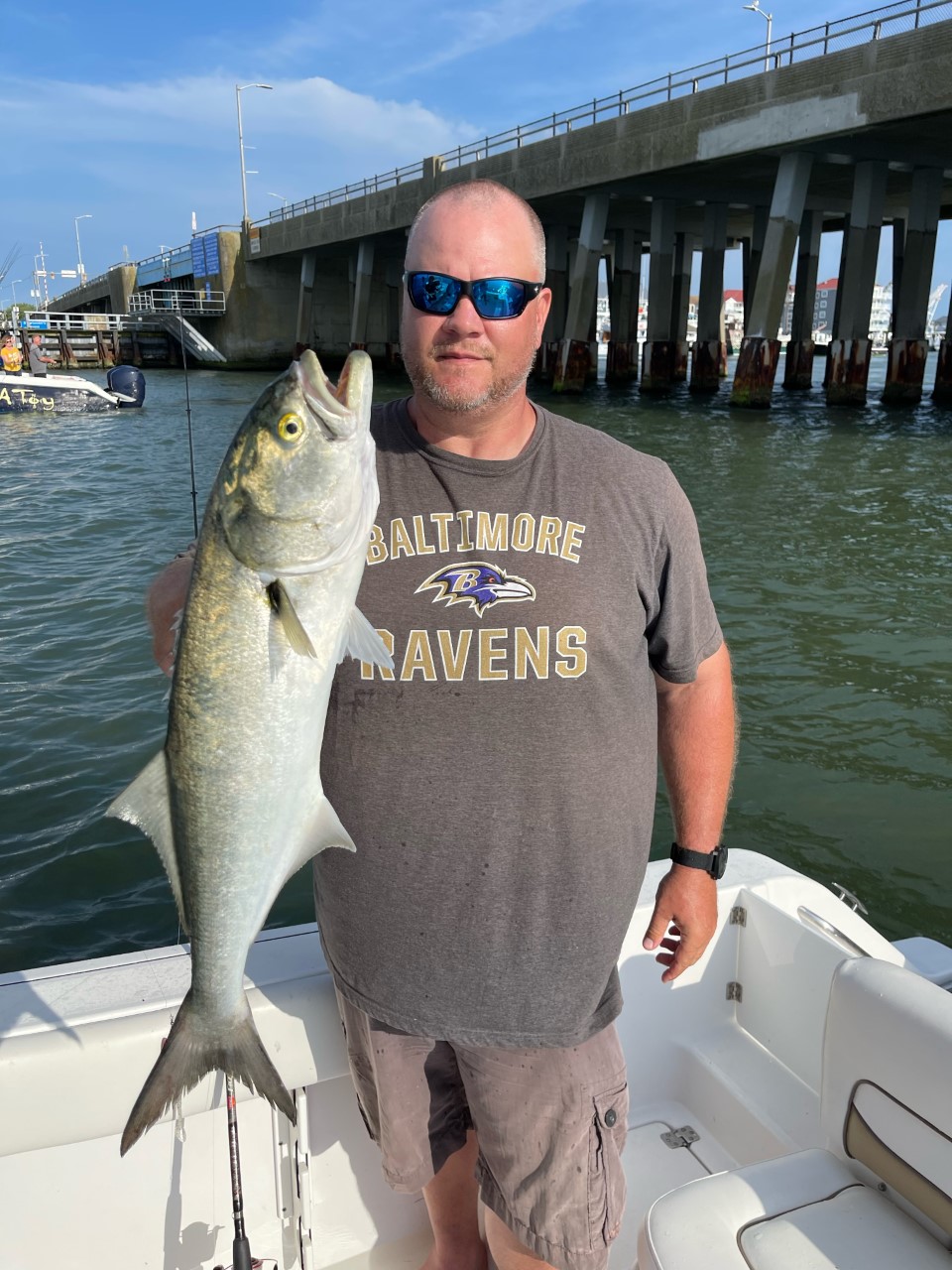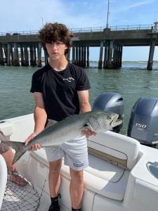 Mike Orchulli and the boys had another good day of fishing at the 50 today.Cade Campbell caught a nice 33” blue and some smaller ones along with a 18” Rock.His twin brother Jack Campbell caught a 24” blue and another smaller one.Dad, Craig caught a 27” blue and Cohen Lutz caught a 20” Rock.All on Roy Rigs and deep divers.