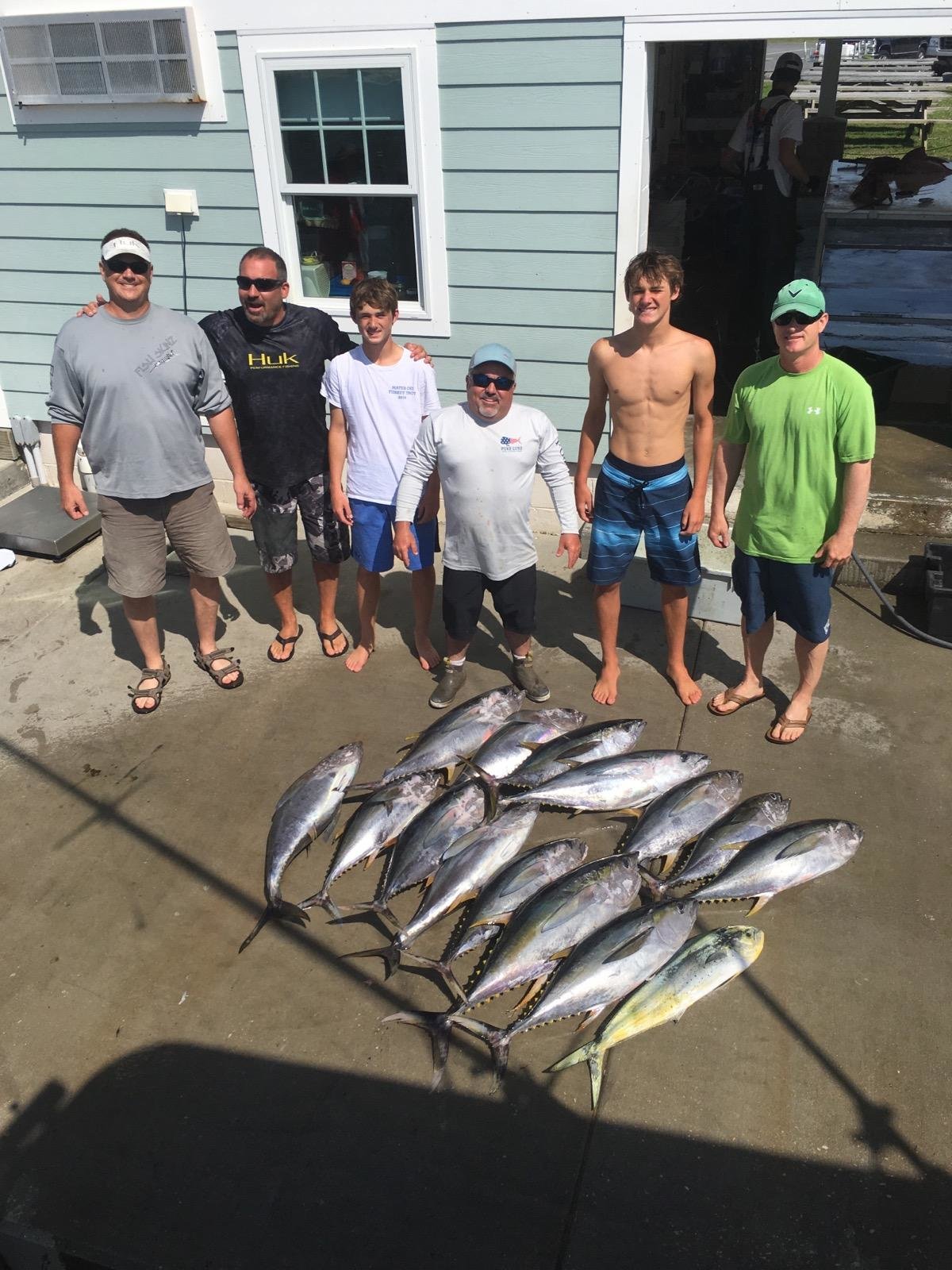 Tom Hinkle and Todd Martinek started vacation right by putting a pile of yellowfin on the dock thanks to Captain Charlie Horning of the Fish Whistle.