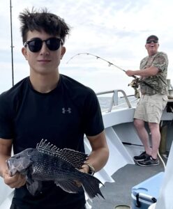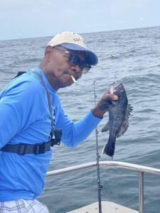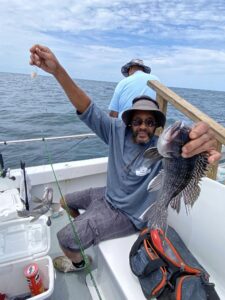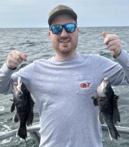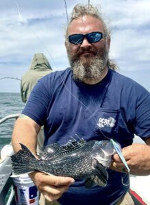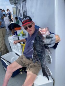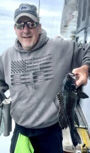 Having worked for every fish in mostly unpleasant conditions, I’m confident everyone boxed dinner & some did much better than that. Roll Tide Mike boxed twelve cbass. Steve from Littlestown PA boated a fine fluke to take the pool.