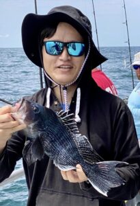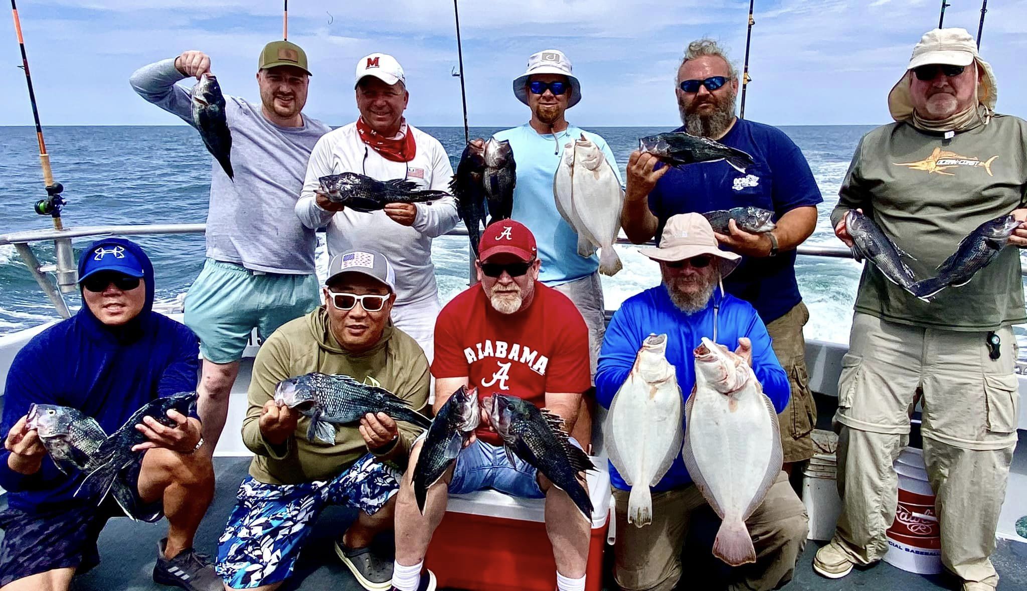 Captain Chris Mizurak of the Angler reported decent fishing on today’s trip to the rip with some flounder and some good sea bass for his anglers.