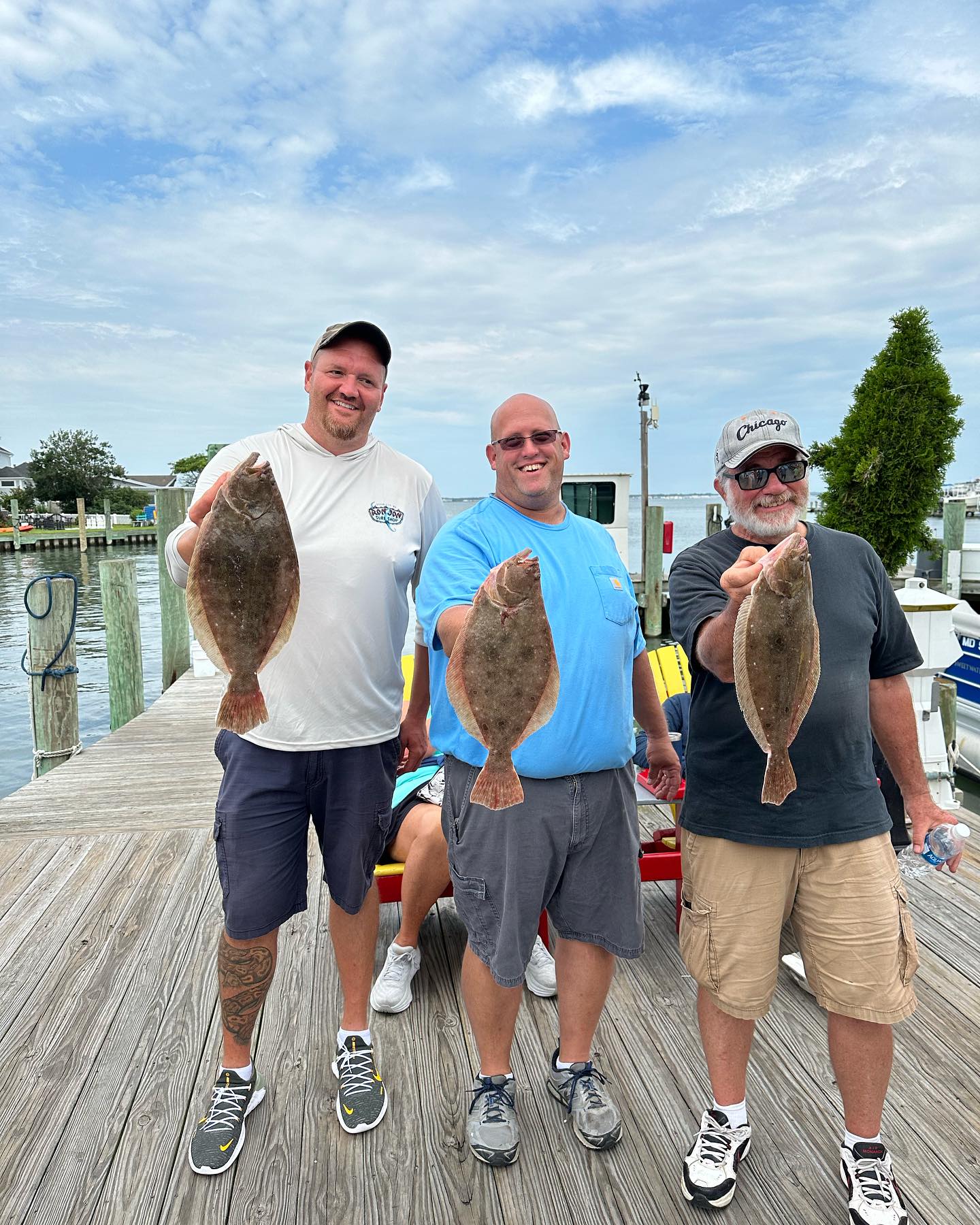 Saturdays are 10 hour ((come 11.5 today!)) “Fish for what’s biting” trips. Sundays and Mondays through August are long fluke/flounder trips. Last one wasn’t too unkind. Usually nick some good cbass too. Perhaps we’ll do better still. Plenty of room tomorrow if you’d like to do an 11 hour flounder trip. �I’d brag about the “Calm and Sunny” forecast – and it really is – but, shewww.. Getting hard to put any faith in it!