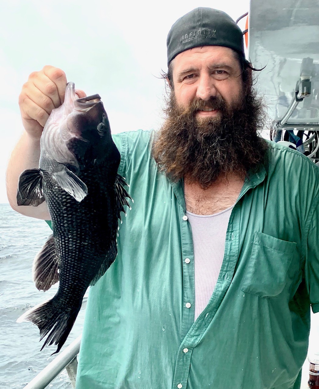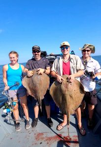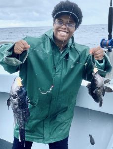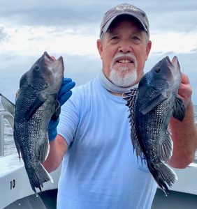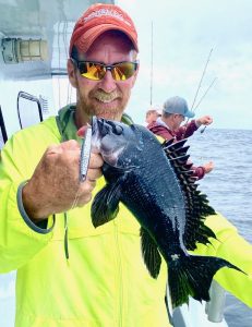 Captain Monty Hawkins of the Morning Star had to deal with today’s rain and a little wind, but he’ll take it if the sea bass fishing keeps up like it’s been.
