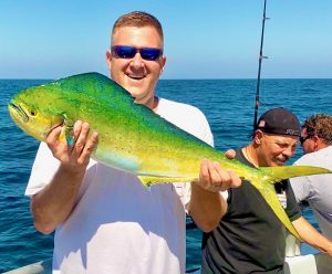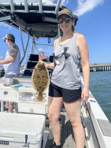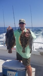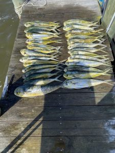 Captain Chase Eberle of Chasin’ Tides Charters had two trips today that were productive for his clients.  First it was some nice mahi out in the ocean and then it was awesome flounder action in the back bay.