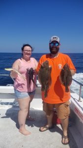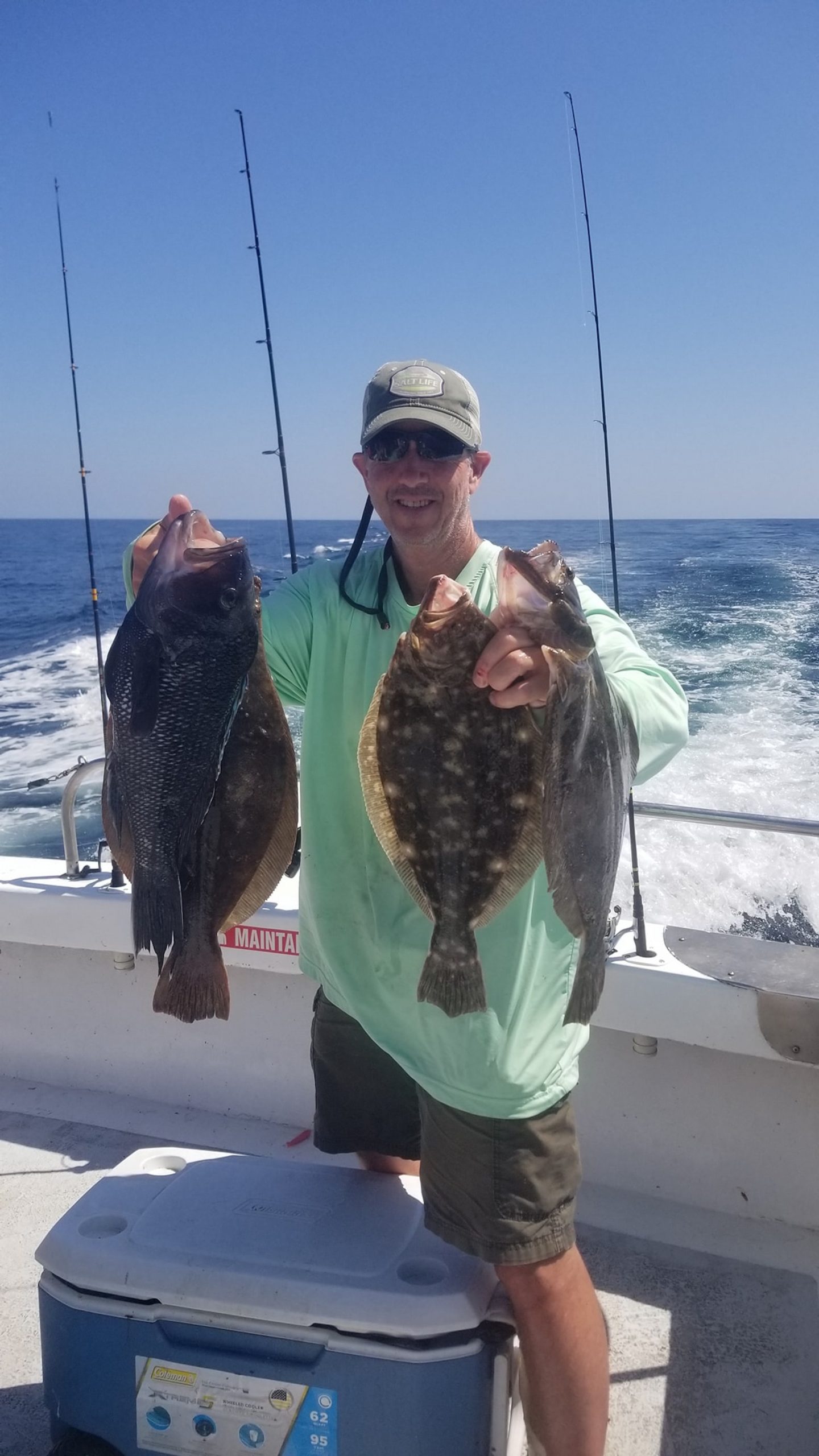 Had some great clients aboard, long time regulars including Mr. Floyd who quickly showed Flounder George how it’s done with back to back keeper fluke.