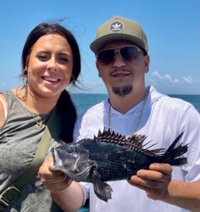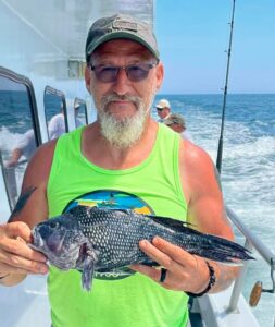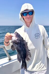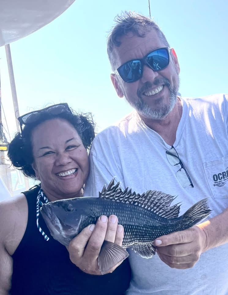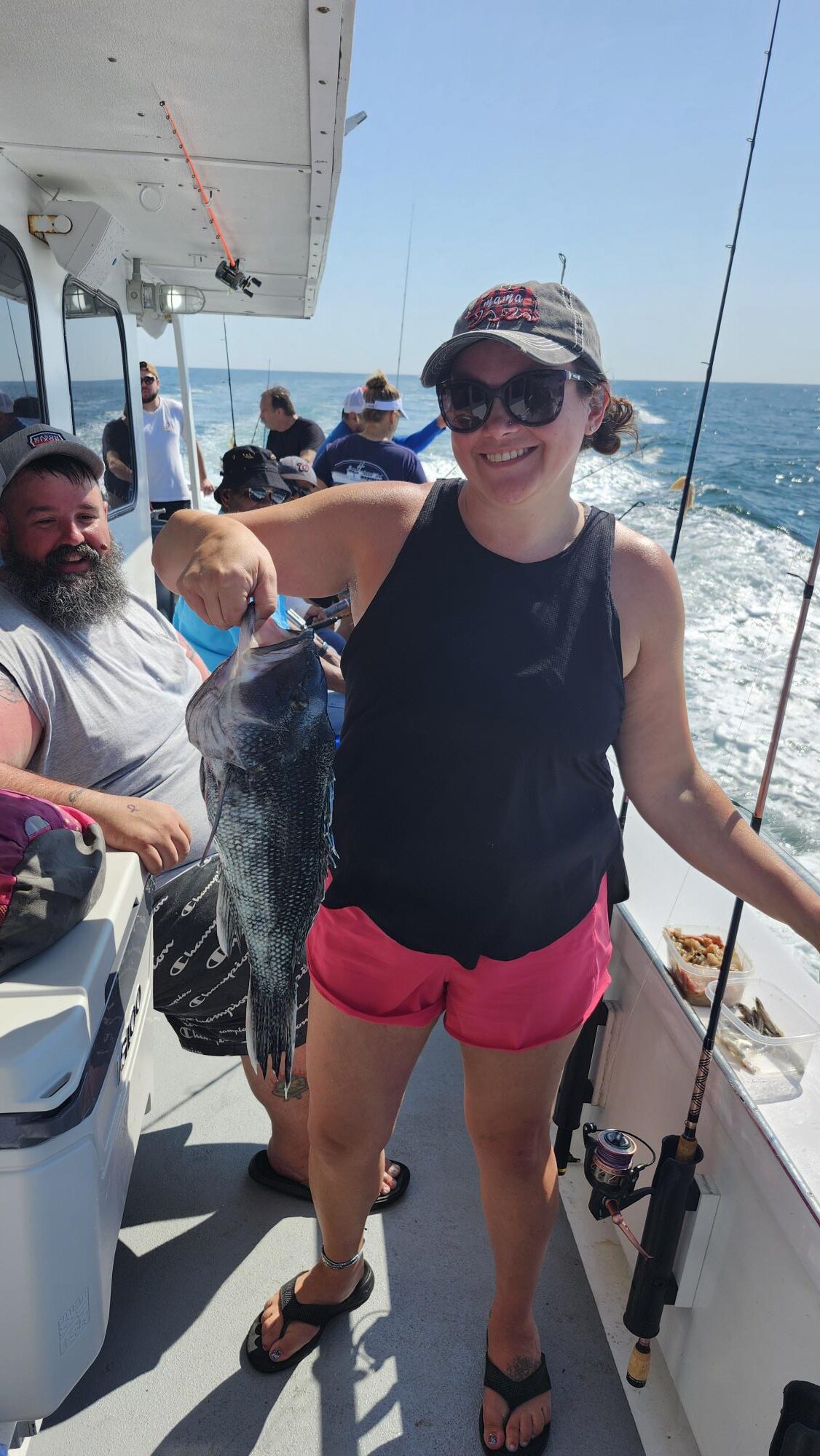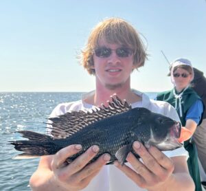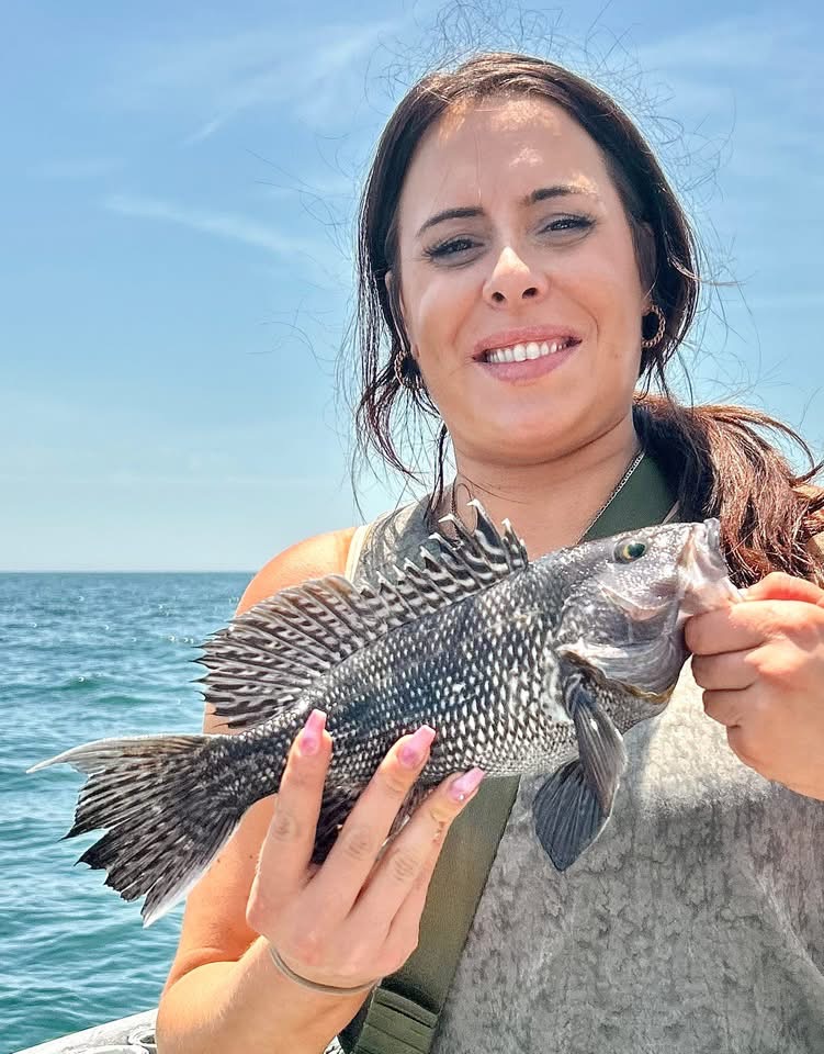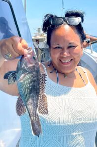 Amber Daugherty caught this big 3.5 pound sea bass fishing on board the Ocean Princess with Captain Victoria Bunting.