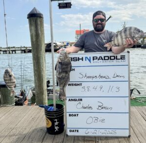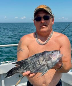 Matt Brown had a two man limit of sea bass about 40 miles out of OC Inlet.