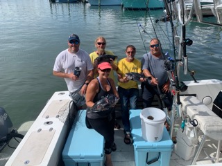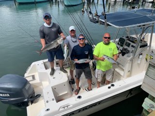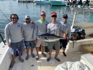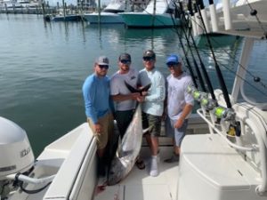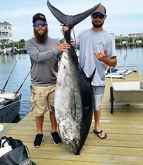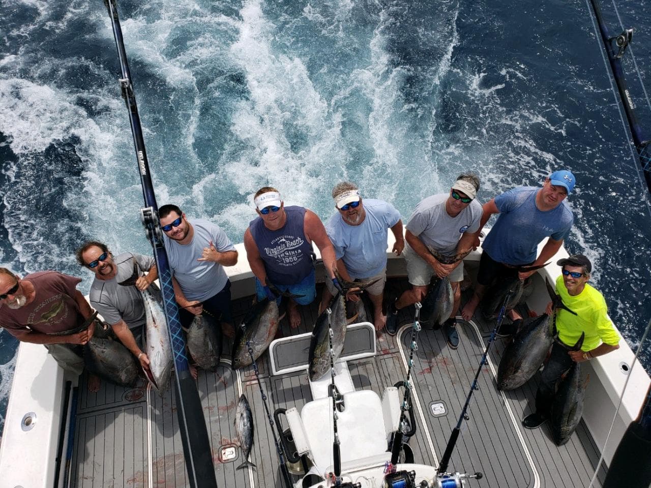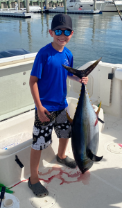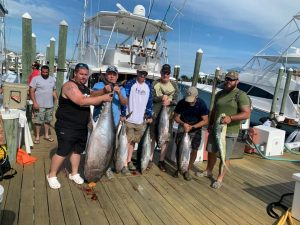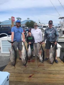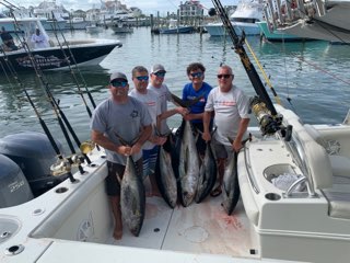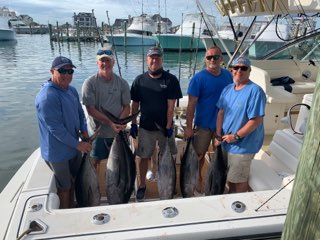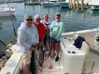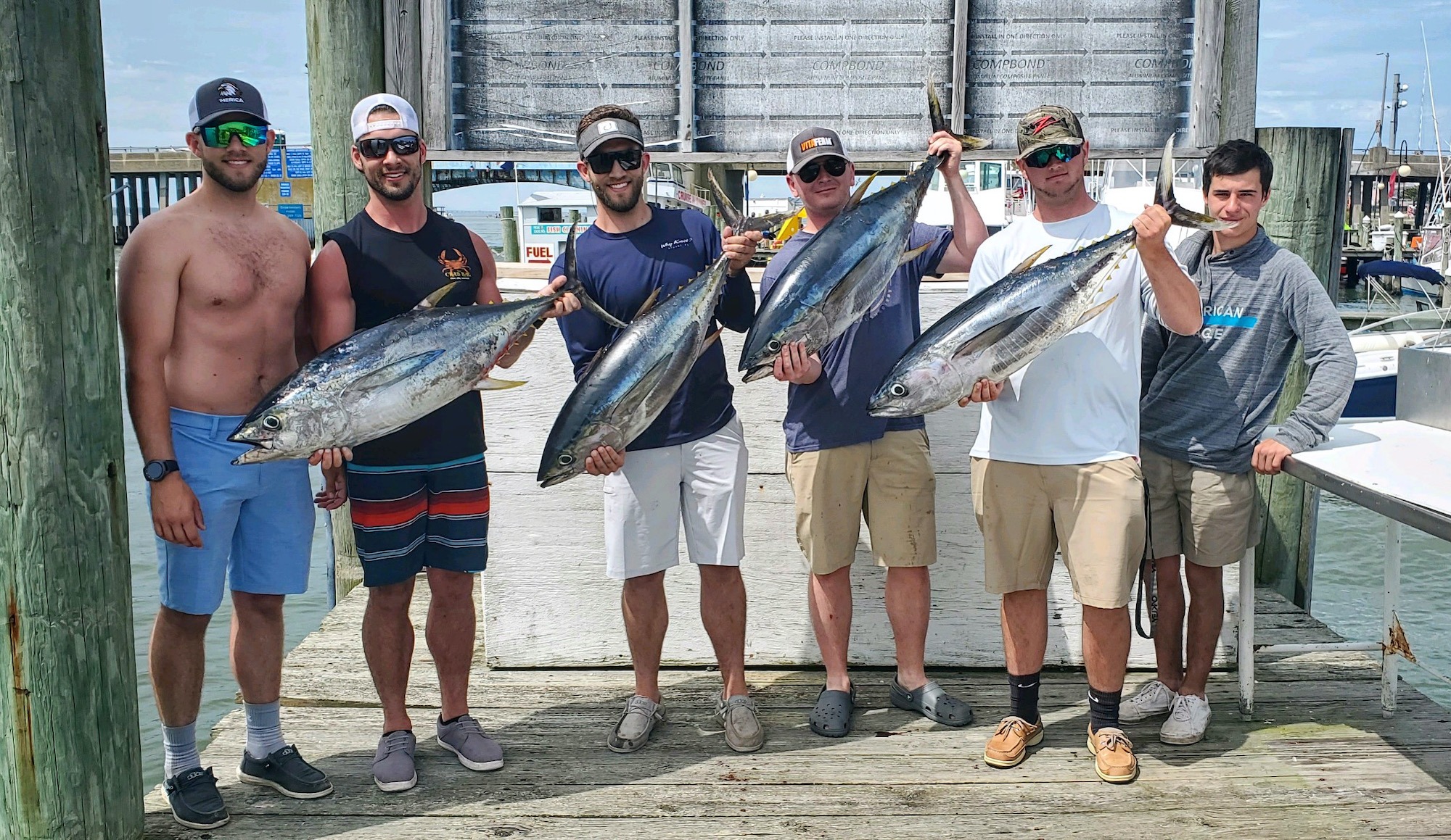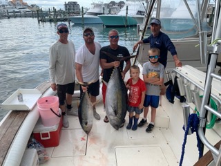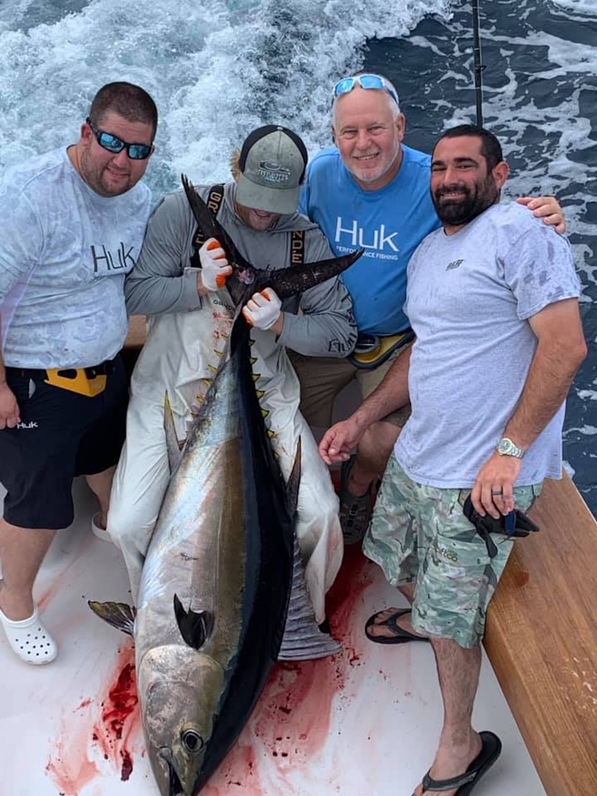 Captain Jack Strouse, Burton Witcraft, Blake Witcraft, Ross Kendall and Chris Kendall caught the first yellowfin tuna ever for the private boat Wild Child out of Pines Point Marina today.
