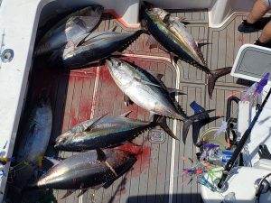 Captain Anthony Matarese Jr. and the crew of Reel Chaos had another awesome day of trolling putting yellowfin and a bigeye in the fish box.
