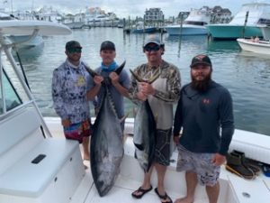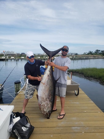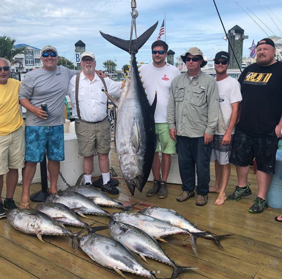The second largest bigeye tuna of the season was caught on the same day out of the same marina when the Wrecker with Captain Jeremy Blunt pulled into his slip at the Ocean City Fishing Center. This big “eyeball” weighed 248 pounds and took several hours to boat. Wrecker also boxed 8 yellowfin tuna.