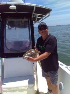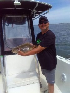 I met this guy at Sunset Marina while weighing our fish for the Small Boat Tournament where he showed me this nice keeper flounder in the Thorofare. His brother also caught a keeper fish of 20″. I’m not sure of his name, but I told him to text me his details and I’d put him in the fishing report. I never got the text, but I’m a man of my word….so here you go, “guy I met at Sunset Marina with the flounder.”