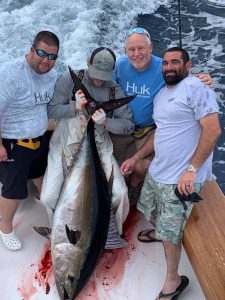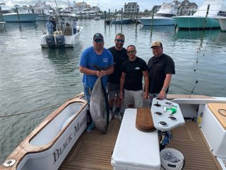 Captain Chase Eberle of Chasin’ Tides Charters left the sea bass gear at home and headed out to the canyons on this beautiful day. Captain Chase put his guys on some quality yellowfin tuna.