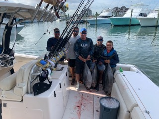 Three generations of Meushaws enjoyed a fun day of trolling on board the Last Call with Captains Frank and Franky Pettolina. They put 5 yellowfin tuna on the dock at the Ocean City Fishing Center.