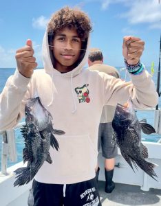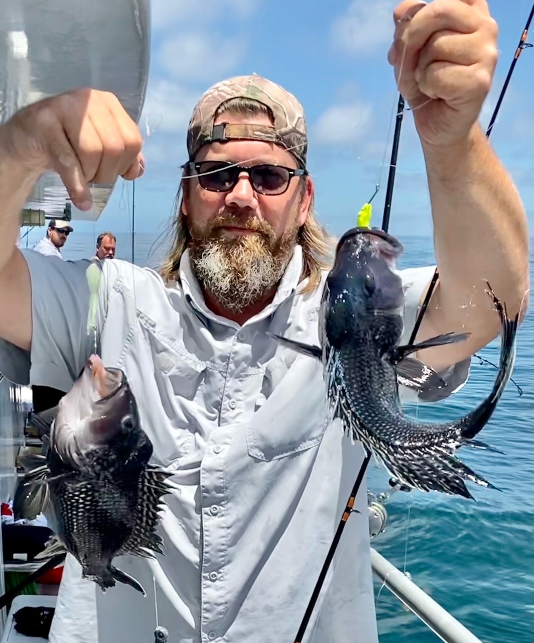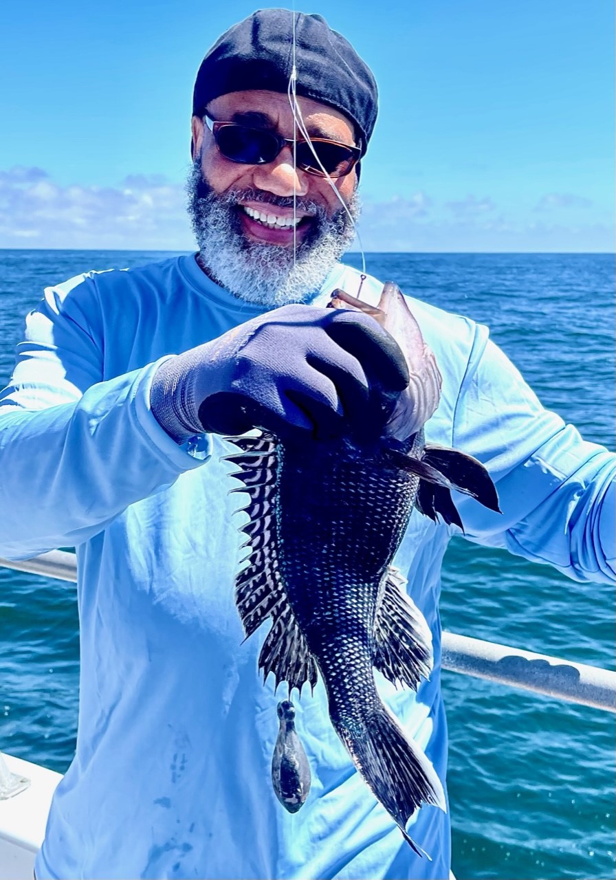 Couldn’t say sea bass were chewing the bottom off my boat, but it wasn’t as hard as yesterday’s mid-day frustrations. The bite may actually have improved owing a bit of balloon karma — Vic picked up a 3 pack of “Congratulations Grad” mylar turtle choker balloons and we caught better.