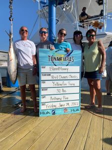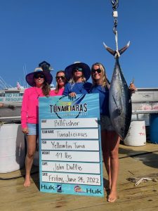 Back home, today was day one for the 2nd Annual Tuna & Tiaras ladies only tuna tournament at the Ocean City Fishing Center. There are 33 boats competing this year and here are the leaders after one day of fishing.